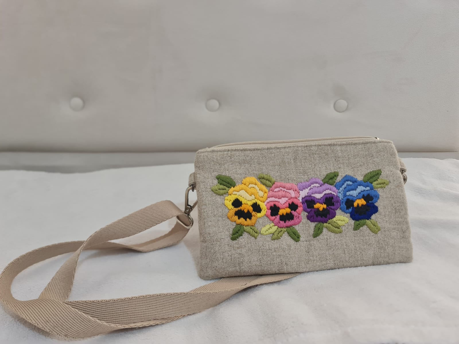 Essa mini bolsa feita em tecido natural com bordado artesanal é a união perfeita entre praticidade e estilo. Charmosa e exclusiva, ela é ideal para compor tanto looks casuais quanto produções mais sofisticadas.