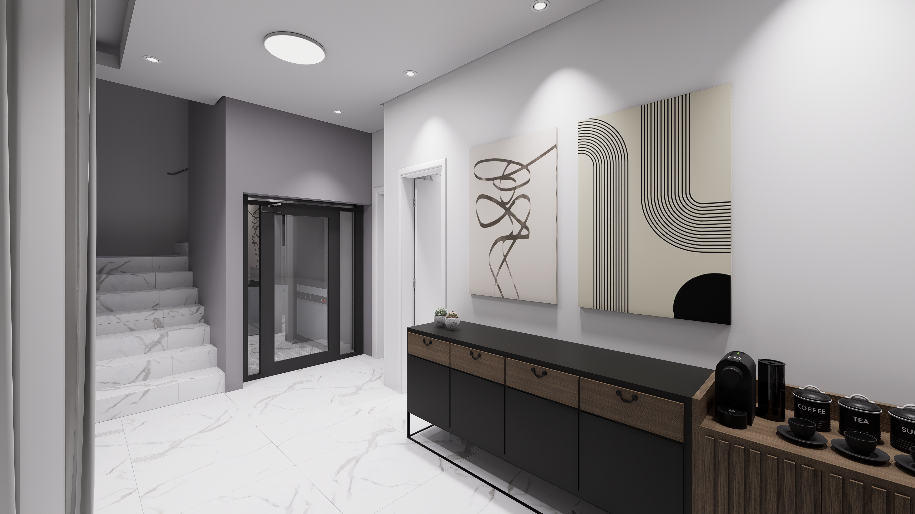 Para garantir a máxima acessibilidade e praticidade, o Triplex Fortaleza conta com uma plataforma elevatória que conecta os três andares. Seja para facilitar a mobilidade ou adicionar um toque extra de exclusividade, tanto funcional quanto estiloso, complementa perfeitamente o ambiente sofisticado da residência.